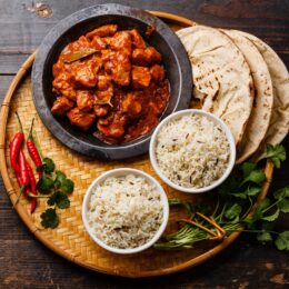 - Stir in the fresh coriander and serve with rice and naan bread.