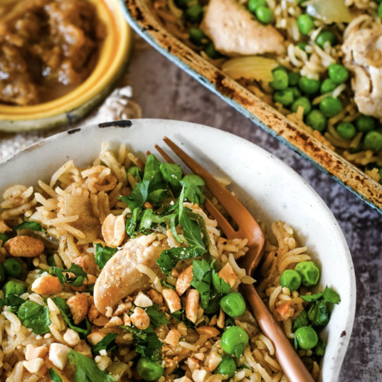 This super quick and easy chicken and pilau rice traybake is moist and succulent, packed with amazing flavours and super easy to make. It is the perfect meal for any night of the week.