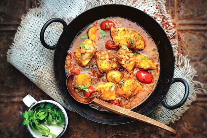3. Add the marinated fish, new potatoes and cherry tomatoes to the Tagine. Put the lid on and cook for 5 minutes or until the fish is cooked through. Taste and season.
