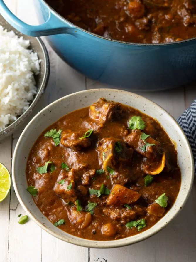 Tip: Wondering what cut of goat meat to use? Due to it’s high fat and bone content, goat neck cut is at its best when cooked nice and slow, as the marrow is released and fat renders into the meat. Making it perfect for this slow cooked curry.