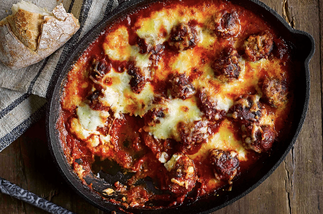 - Combine 200g of grated mozzarella with mascarpone and salt. Spoon over the meatballs, then scatter remaining mozzarella on top.