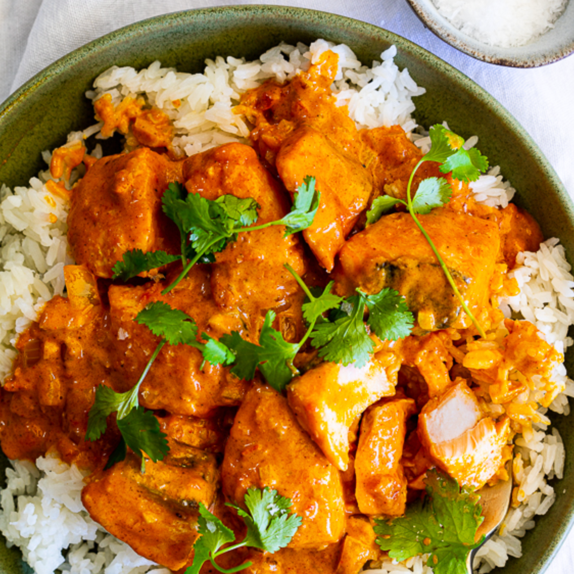 - Season to taste and then add in the salmon. Once added turn off the heat and let the curry rest for 10 minutes to allow the salmon to cook in the masala sauce. Before serving, scatter fresh coriander.