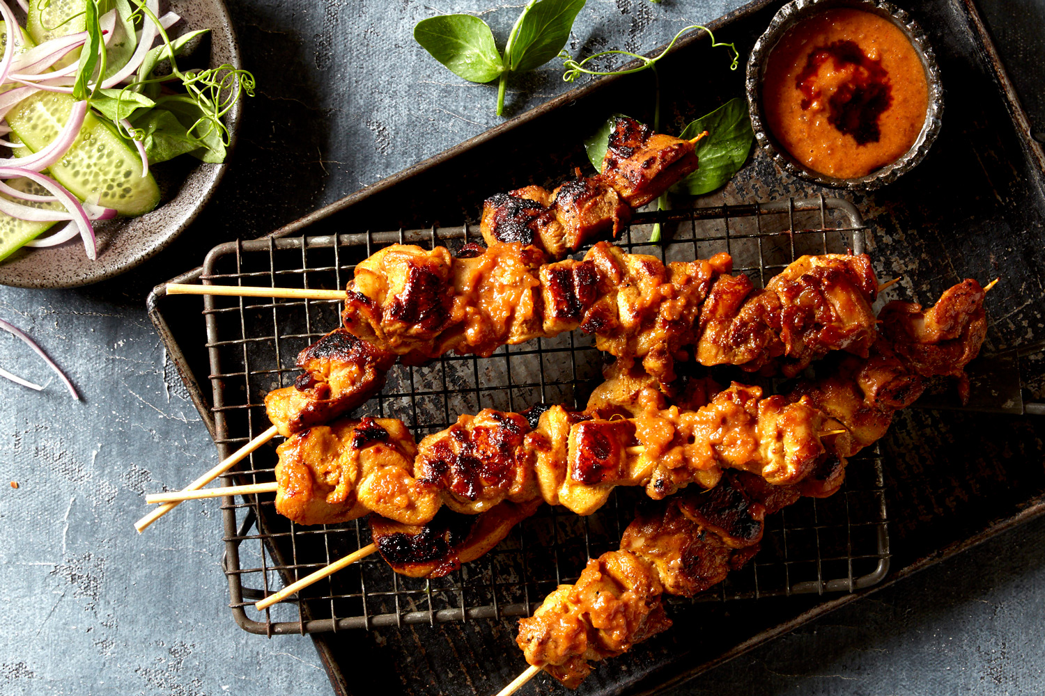 - Soak the bamboo skewers in cold water for at least 15 minutes, to stop them burning under the grill.